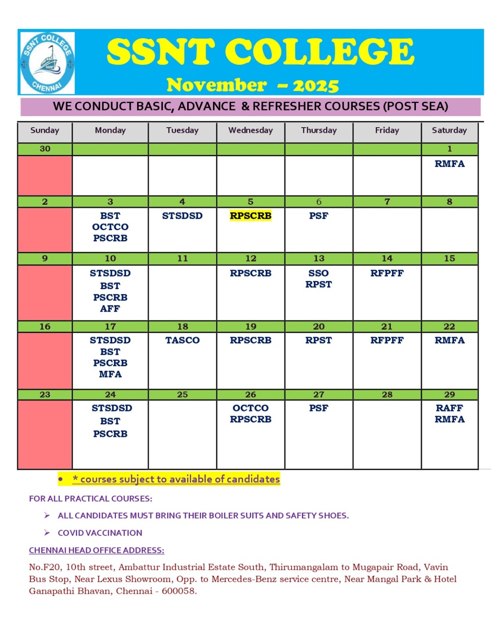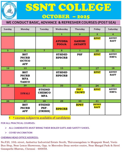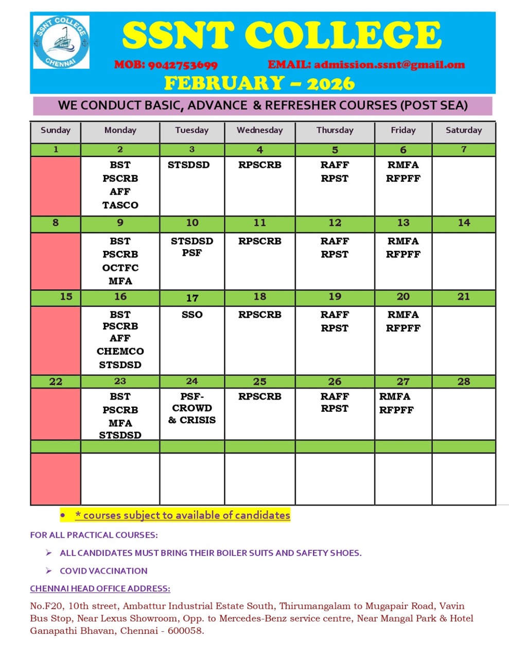 1. STCW COURSE – BST BATCH – is scheduled on below dates: